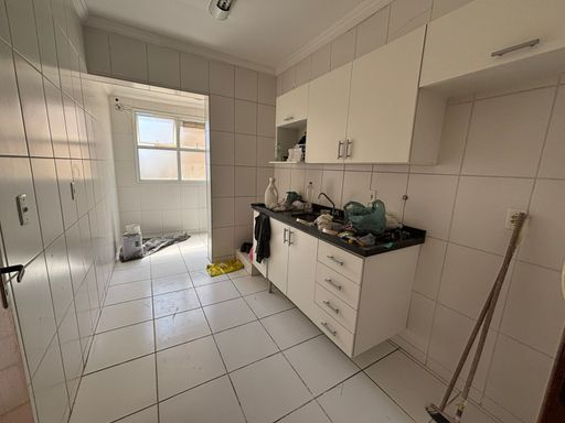 Sala ampla para dois ambientes, com sacada; Cozinha prática e bem ventilada; Área de serviço integrada; 2 dormitórios, sendo 1 suíte; Banheiro social; 2 vagas de garagem.