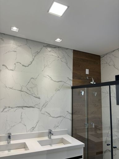 Banheiros com metais e duchas Deca, pressurizador e aquecimento solar;