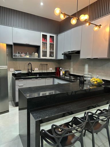 Cozinha estilo americana integrada à área gourmet