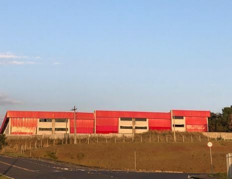 Todo murado, pé direito de 10 metros, docas para 10 caminhões, mezanino com 10 escritórios/salas e 10 banheiros, 10 vestiários, copa, refeitório para 100 pessoas com churrasqueira e banheiros, portaria com sala deespera e 2 banheiros e casa para caseiro.