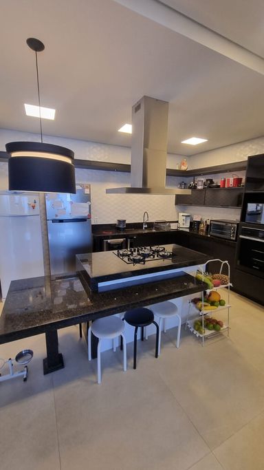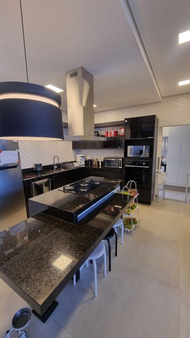 Cozinha ampla com ilha e armários planejados