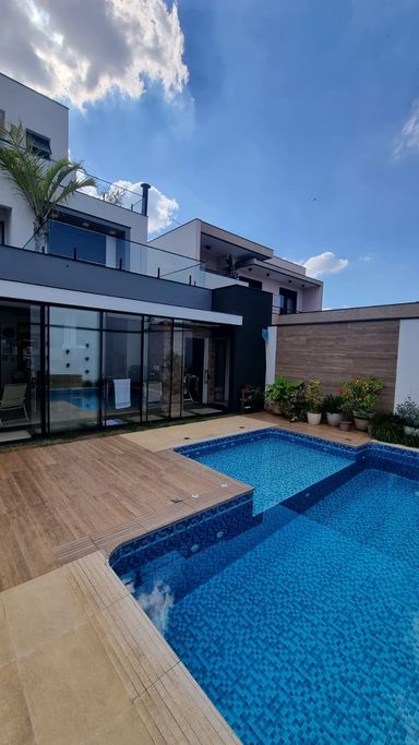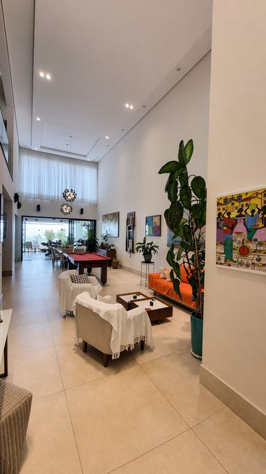 Imóvel com 343 m² de área construída em terreno de 370 m², com arquitetura moderna, localizado em rua sem saída e na parte central do condomínio, proporcionando mais privacidade e tranquilidade.