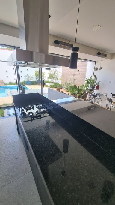 Espaço gourmet completo, com churrasqueira e cooktop
